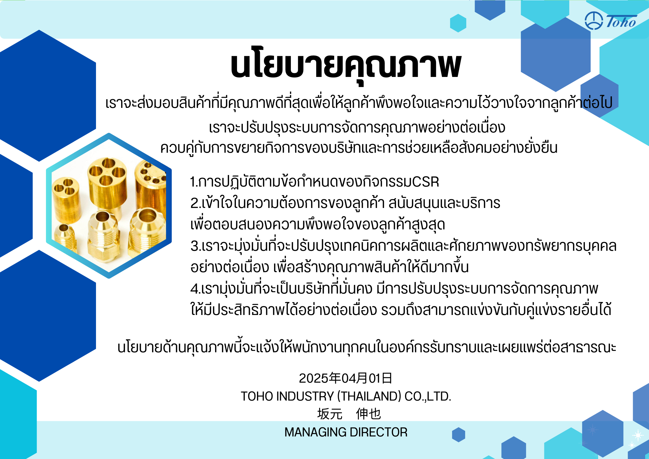 นโยบายคุณภาพ, สิ่งแวดล้อม, บริหาร, CSR, ความปลอดภัย อาชีวอนามัย และสภาพแวดล้อมในการทำงาน 2025